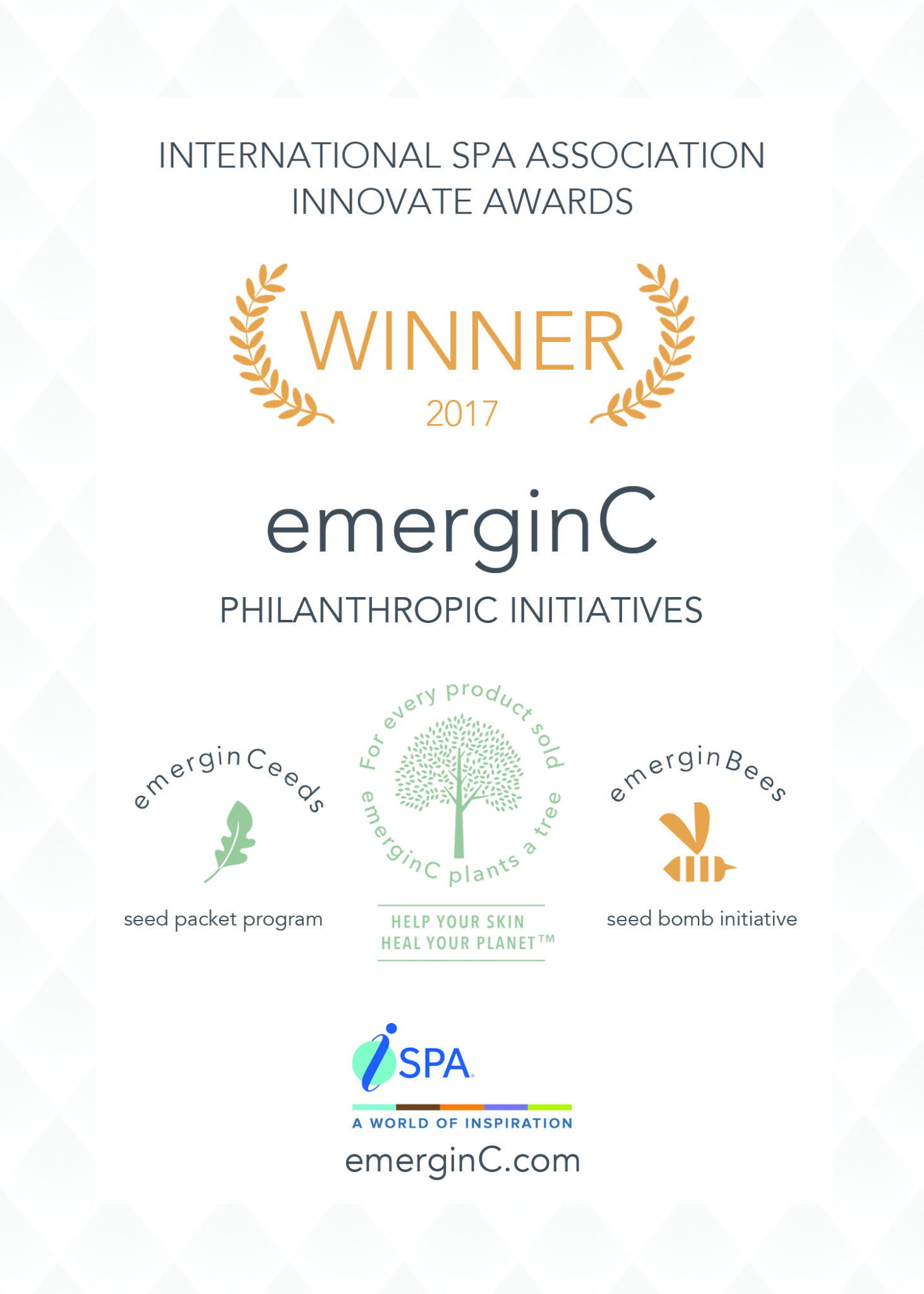 ISPA Innovate Award for Philanthropic Initiatives, including emerginCeeds, emerginBees, and the Buy One, Plant One tree-planting program