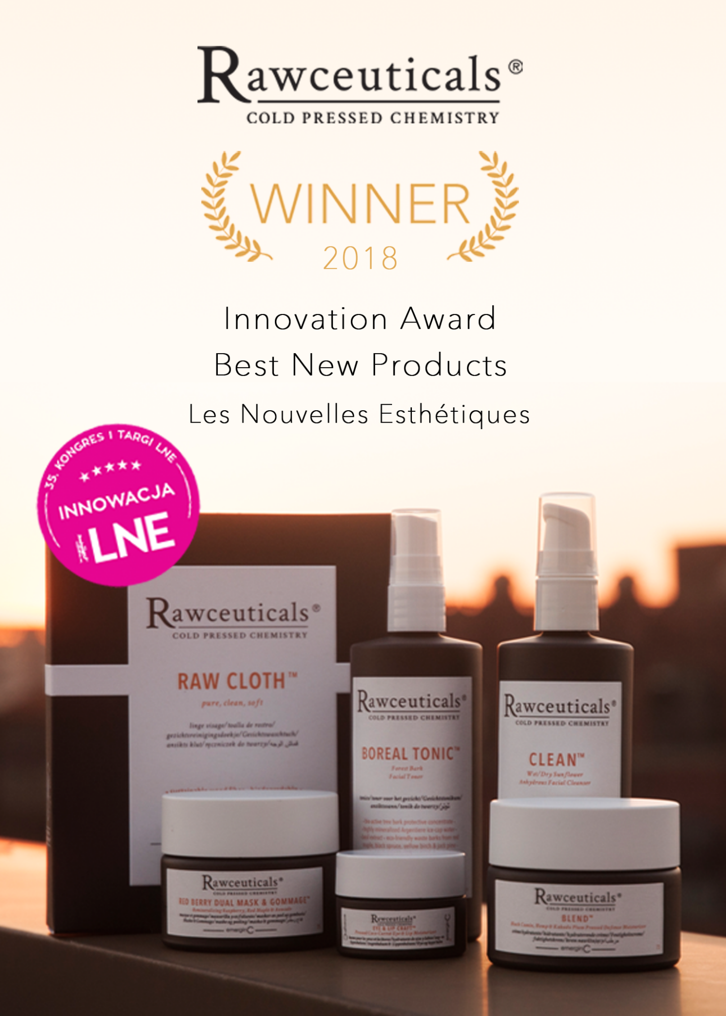 Nouvelles Esthétiques Innovation Award for Best New Products, honoring Rawceuticals®
